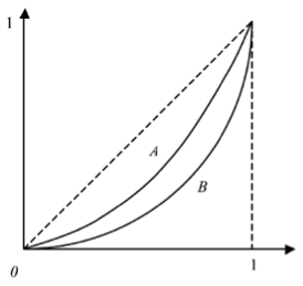 Es fácil comparar en la figura a.i dos distribuciones de ingreso familiar, la curva A es menos desigual que la B, ya que está más cerca de la línea de igualdad.