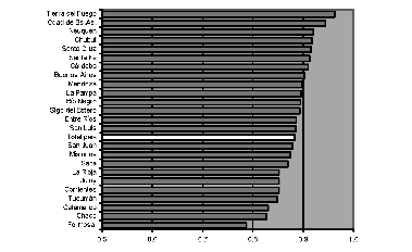 Dotar al idh-pnud de mayor validez y, al mismo tiempo, de sensibilidad para reflejar la desigual distribución de las capacidades entre unidades subnacionales requiere, en primera instancia, centrar el análisis en sus variables componentes. Es necesario comenzar indagando si cada uno de los indicadores que integran el índice sintético constituye una medida capaz de mostrar la forma en que se distribuyen los logros en un país determinado.