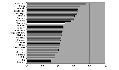 Siguiendo con las consideraciones que señalan la importancia de la dimensión territorial en la configuración de los logros al alcance de las personas, cabe indagar acerca de la sensibilidad del idh para dar cuenta de la distribución de las capacidades entre entidades espaciales de escala subnacional. En otras palabras, interesa examinar si ese índice es una medida válida para reflejar las diferencias en el acceso a oportunidades en las distintas unidades en las que se organiza un país.