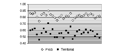 Los resultados permitieron constatar que la distribución de algunos indicadores del idh-pnud se hace significativamente homogénea a medida que el país adquiere cierto grado de desarrollo. Es decir, al mejorar las condiciones de vida de una población las medidas pierden capacidad para reflejar las diferencias al interior del territorio nacional.
