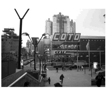 El hipermercado Coto, el sa y el subte son los lugares del barrio que los moradores de las ta frecuentan a diario. Son las necesidades de transporte y, particularmente las de consumo, las que motivan el empleo cotidiano de estos ámbitos. Los comercios de la calle Corrientes se presentan como otra alternativa para salir de compras. Estos itinerarios nos dan otra pauta sobre las motivaciones que operaron en la elección de las ta como lugar de residencia. El predominio de estos usos del barrio también refuerza la importancia que tiene en la vida cotidiana el fácil acceso a los centros de consumo. No se trata sólo de estar más cerca de todo sino de disponer de todo en un mismo lugar. Esta concentración espacial de comercios permite reducir los tiempos muertos de desplazamiento.