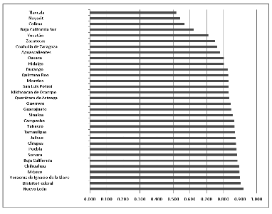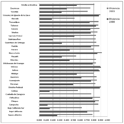 likewise, a ranking of technical efficiency for the federal states of Mexico is