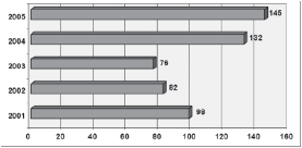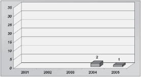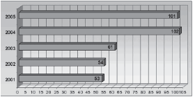 Olavarría en la prensa nacional entre los años 2001-2005: 84 (100%).