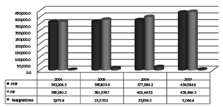[31] Durante el periodo 2004-2007 los balances económicos presentaron déficits de 133,494, 129,060, 217,624 y 251,984 millones de pesos a precios de 2010, respectivamente (Banxico, 2011).