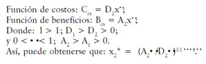 Función de beneficios:  Bcs = A1x۰۰ .  Donde:  0 < ۰۰ < 1; A1 > 0