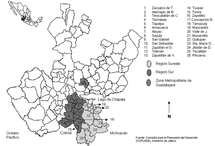 de Jalisco, en el occidente de México (mapa 1),[1]