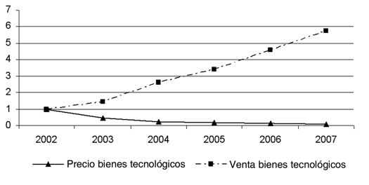 Tomamos un ítem tecnológico aún no diseminado por todas las clases sociales (diferente de la televisión, presente en más de 90% de los domicilios brasileños). En sólo cuatro años la proyección de ventas de los televisores de cristal líquido muestra un incremento en dólares de casi 600% –esto con un precio reducido en 90%, lo que señala que el crecimiento en el número de aparatos vendidos es aún mayor.