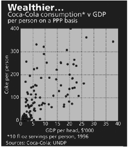Relación entre consumo de Coca-Cola por habitante y pib per cápita