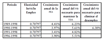desaparición del desempleo en un lapso de diez años sólo es posible con un