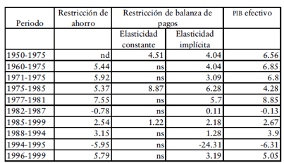 Restricciones al crecimiento del pib, 1950-1999