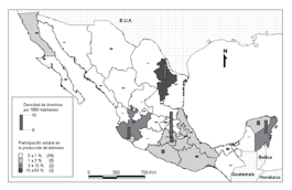 en la producción de dominios en México, Estados Unidos (Moss y Townsend, 1997 y