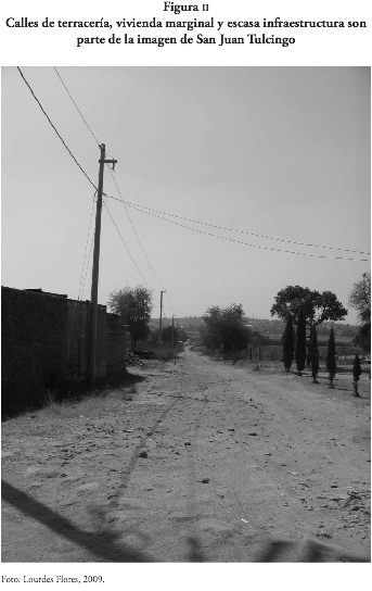 El asentamiento de sjt forma parte de las nuevas áreas de crecimiento de la zmcp y presenta las mismas características de marginalidad urbana de la mayoría de los asentamientos irregulares (ai), es decir, no cuenta con la suficiente infraestructura ni con los equipamientos necesarios para su desarrollo urbano. De hecho, en el asentamiento, la única infraestructura urbana existente es la red eléctrica y en este momento difícilmente podrá acceder a los programas de incorporación al desarrollo urbano[6] debido a que no cuenta con 50% de la densidad, como lo marca el artículo 115 de la Ley de Desarrollo Urbano Sustentable del Estado de Puebla (ldusep, 2003). Esta situación excluye a los asentamientos que no cumplen con este requisito y es contradictoria a la misma ley que promueve el desarrollo urbano sustentable (título noveno, capítulo III). Además, a pesar de la gravedad urbana ocasionada por los ai, en Puebla y, aunque es creciente el estudio sobre estos asentamientos –Patiño, 2004; Flores, 2004; Reyes, 1999; López, 1999; Melé, 1994–, todavía resta mucho trabajo en esta materia.