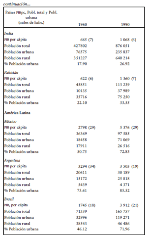 desarrollo y la urbanización en el Tercer Mundo, basado en algunas