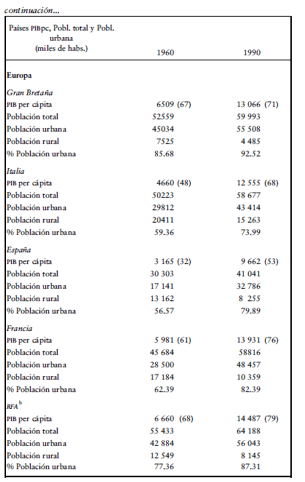 y porcentaje de población urbana, 1960 y 1990