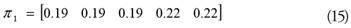 De acuerdo con lo anterior, en cada periodo t existen n estados mutuamente excluyentes, en los cuales cada región tiene que ocupar uno de esos estados. El modelo para la productividad del trabajo está dado por un vector de probabilidad inicial (π1), mismo que describe la probabilidad de los posibles valores del estado inicial P1: