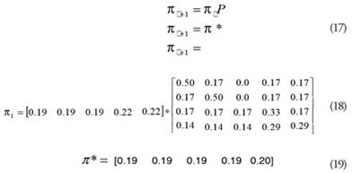 Ahora bien, para analizar el proceso dinámico de las entidades maquiladoras, y evaluar si tienden hacia una convergencia o divergencia, es necesario multiplicar el vector de estado inicial (π2) por las matrices de transición previas, para ambos casos los vectores ergódicos se muestran a continuación: