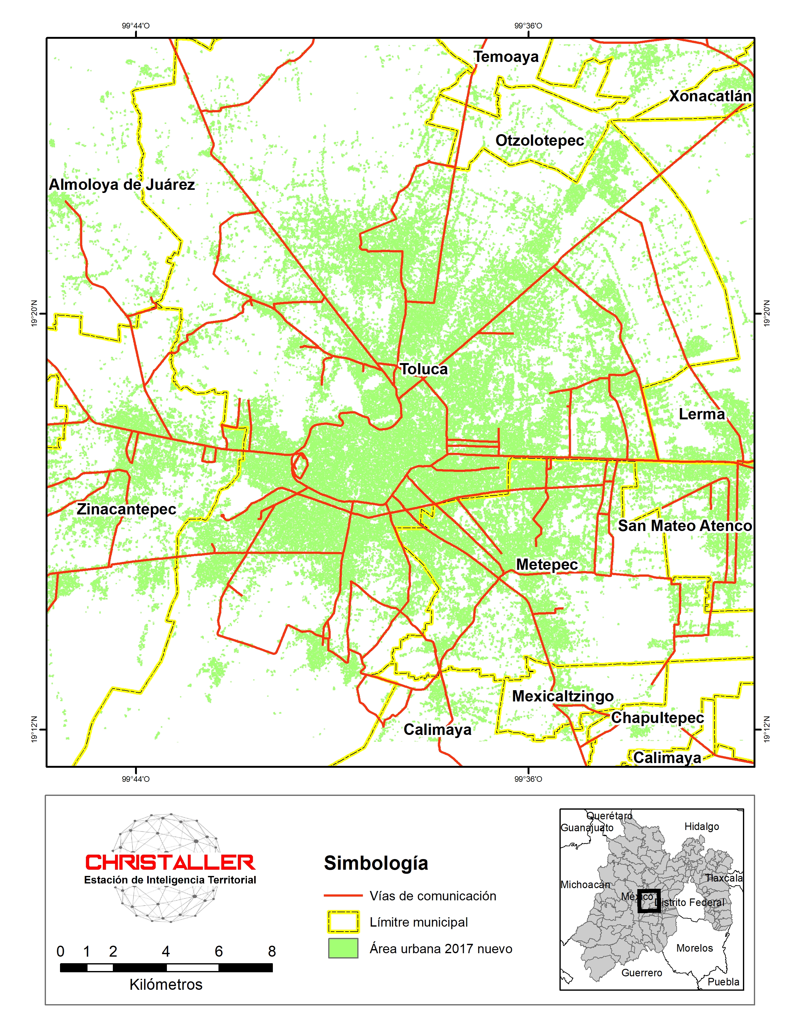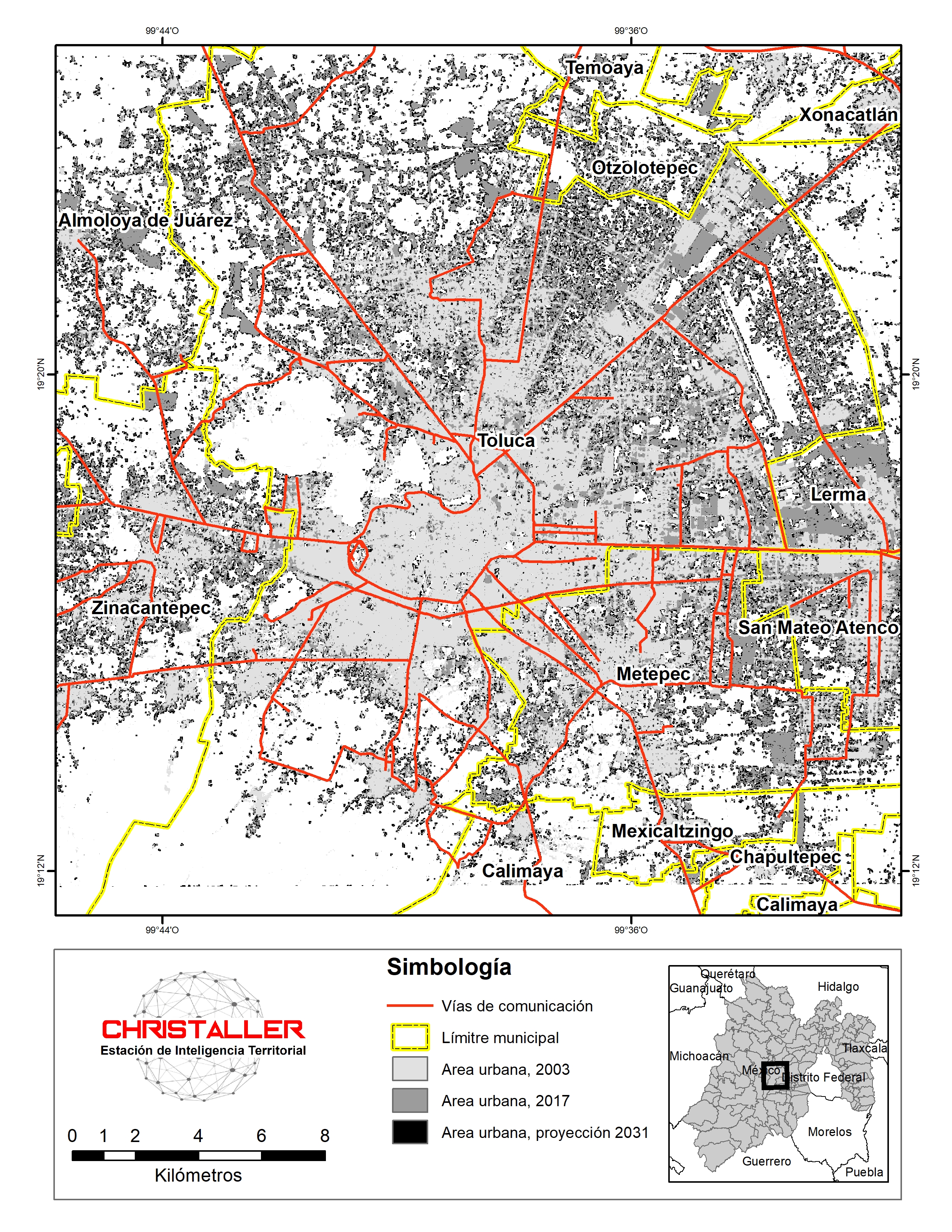 Jiménez, Eduardo; Carlos Garrocho y Tania Chávez (2018), “Modelando la expansión urbana con Autómatas Celulares: aplicación de la Estación de Inteligencia Territorial (CHRISTALLER®)”, Geogra- fía y Sistemas de Información Geográ ca (GeoSig), 12 (10), Instituto de Investigaciones Geográ cas-Universidad Nacional de Luján, Luján, Argentina, pp. 1-26.