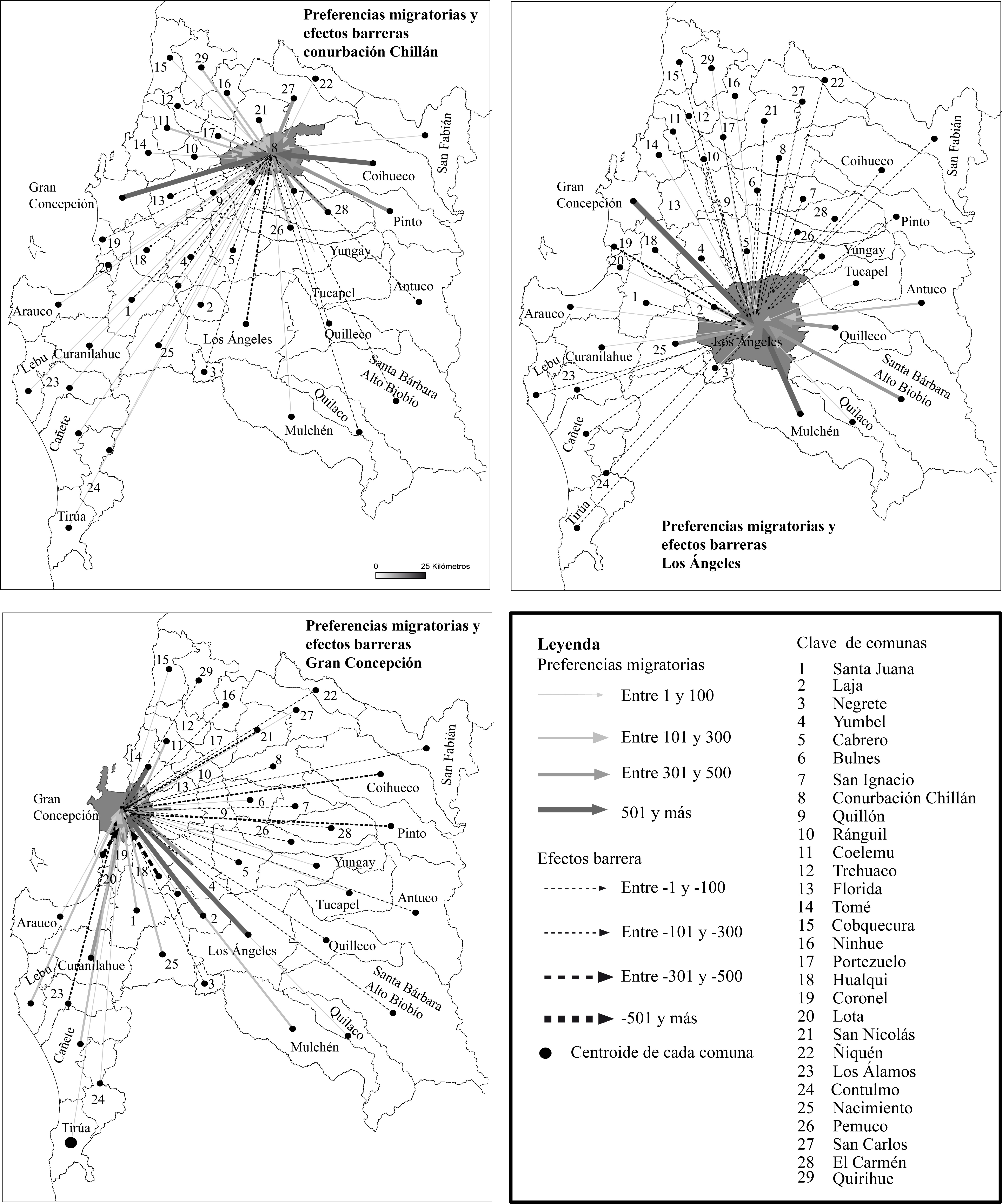 El proceso de migraciones internas en la región del Biobío expresa un proceso de redistribución espacial que tiende a la polarización del espacio hacia la capital regional –Concepción metropolitano– y a las comunas contiguas a ésta. De igual manera, se observa una fuerte atracción migratoria de las capitales provinciales pero circunscrita a su hinterland. Además, se determina que el perfil del migrante desde estas ciudades hacia la capital regional se caracterizaría por una alta educación, a diferencia de los migrantes de las comunas aledañas a las capitales provinciales, que se compondrían más bien por población joven con bajos grados de escolaridad.